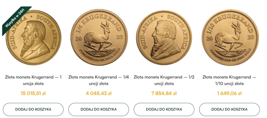Krugerrand – gdzie kupić? W Polsce jednym z najlepszych dostawców jest Cashify Gold, który zapewnia tę monetę wraz z dostawą. Poza granicami kraju warto rozważyć strony online, JM Bullion czy APMEX zapewniają konkurencyjne ceny – dla 1 oz, około 4100 USD plus wysyłka. Niemniej jednak pamiętaj, że w przypadku problemów – te spółki podlegają zagranicznym przepisom i regulacjom. Wybieraj dealerów z LBMA, by zapewnić autentyczność. Dla frakcji, 1/10 uncji to idealny start dla początkujących, kosztujący poniżej 500 USD.