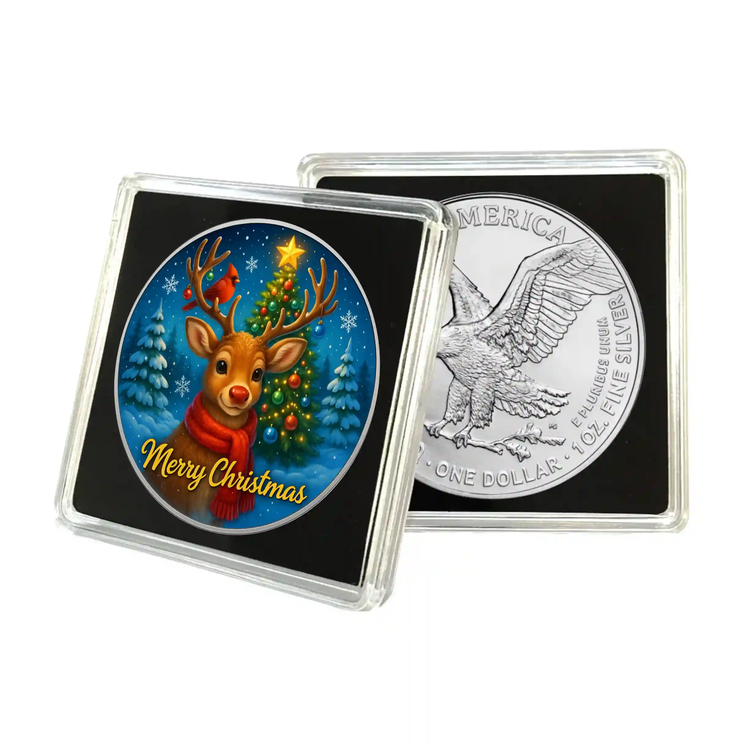 Srebrna moneta Merry Christmas: Reindeer – Amerykański Orzeł – 1 uncja srebra